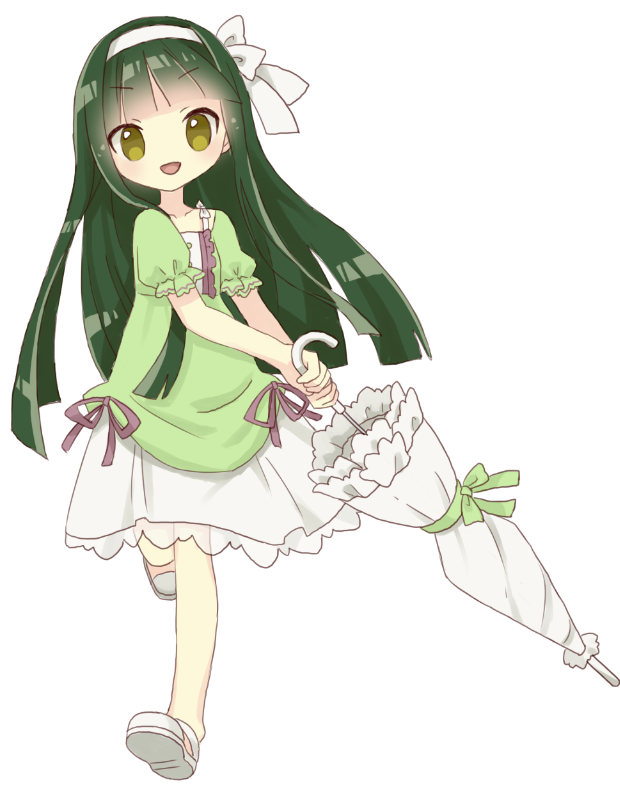 日傘兼用雨傘を振り回す。やや強気で好戦的な女の子。