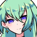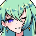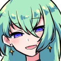 薄い緑色の長髪を風に揺らし、夜色の瞳で自信満々に笑う女性。