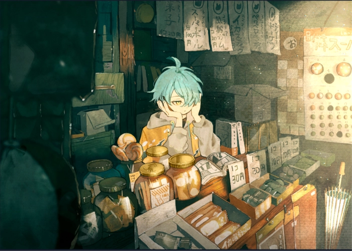 北摩テクノポリスにある駄菓子屋:アケズ堂を営む青年。