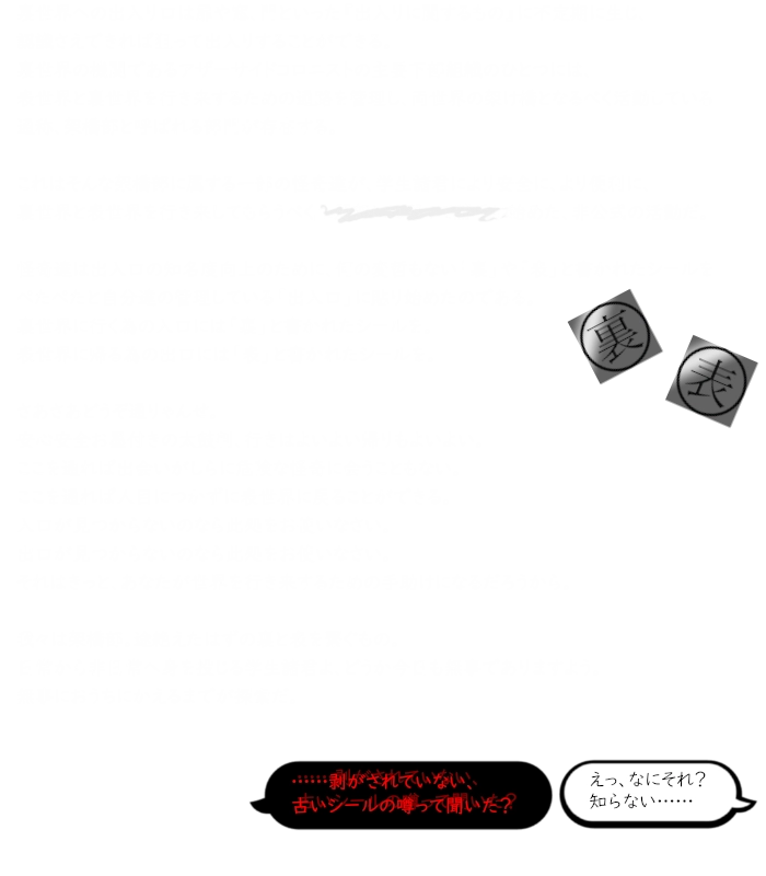 しかし表世界と裏世界を地続きにできず、記憶と意識を引き継げない。