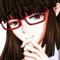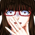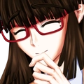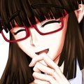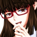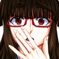 左の目尻に泣きぼくろがあり、長い髪の先端は薄く赤色に染まっている。