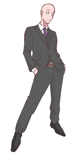 人間時の姿は身長174cmスキンヘッド男性。