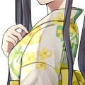 浴衣姿でちょこんと座る。