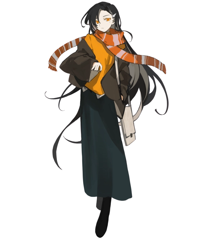 そして瞳の色に似た、橙色のマフラーがトレードマーク。