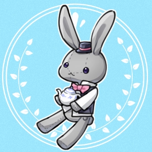 ティーポットを持ったうさぎのキーホルダー。