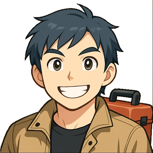 普段は技術者らしい作業用ジャケットと工具ベルトを身につけ、赤い工具箱を常に持ち歩いている。