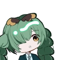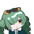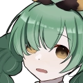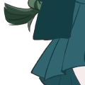 地毛の黒から緑に染めた髪。