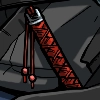 初めに見えたんは、アタシが浴衣着てた時に差してた、簪とほぼ同じな真っ赤な刀。