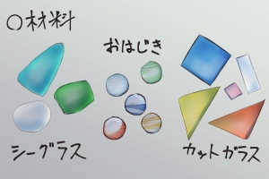 こっちでカットガラス、おはじき、シーグラスを用意したわ。