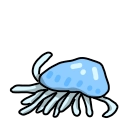 ハブクラゲ縁の、本来は熱帯性の立方クラゲの1種。俗称の由来でもある『魚の死骸を集団で看取るかの様な行為』をはじめとして、『仲間同士で連絡を取り合う』など、まるで脳があるかのような行動をする。理由についてはまだ研究中であるが、脳と呼べる器官が発生しているとされた文献は無い。
