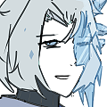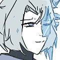 ローブを着込み、体の左半身が凍りついている。