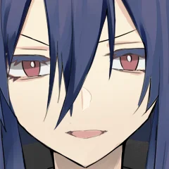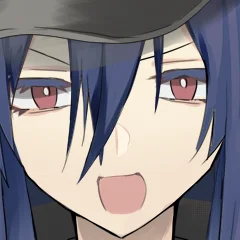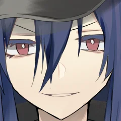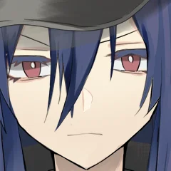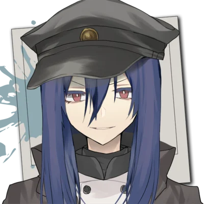 紺色の長髪、赤色の瞳。晶笨国の軍服、軍帽を着用。