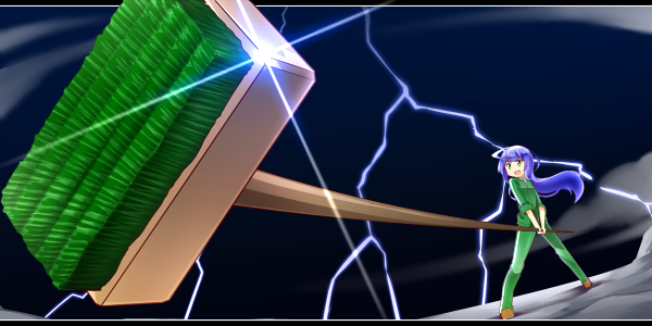 異世界に飛ばされ戦闘をした折、たまたま握ったデッキブラシに愛着を持ち、自身の原点としてその形を継承した杖を使用している。